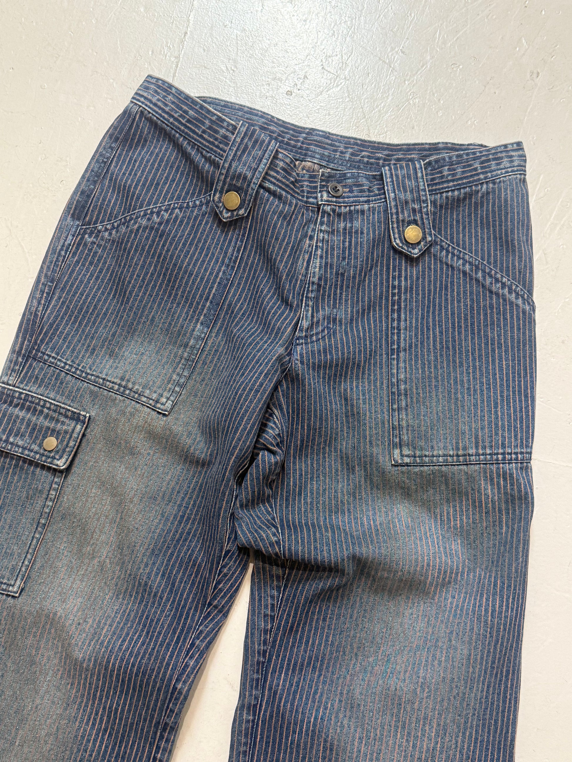 Made in Japan Comme ca ism denim, conductor/carpenter style with pinstripes throughout