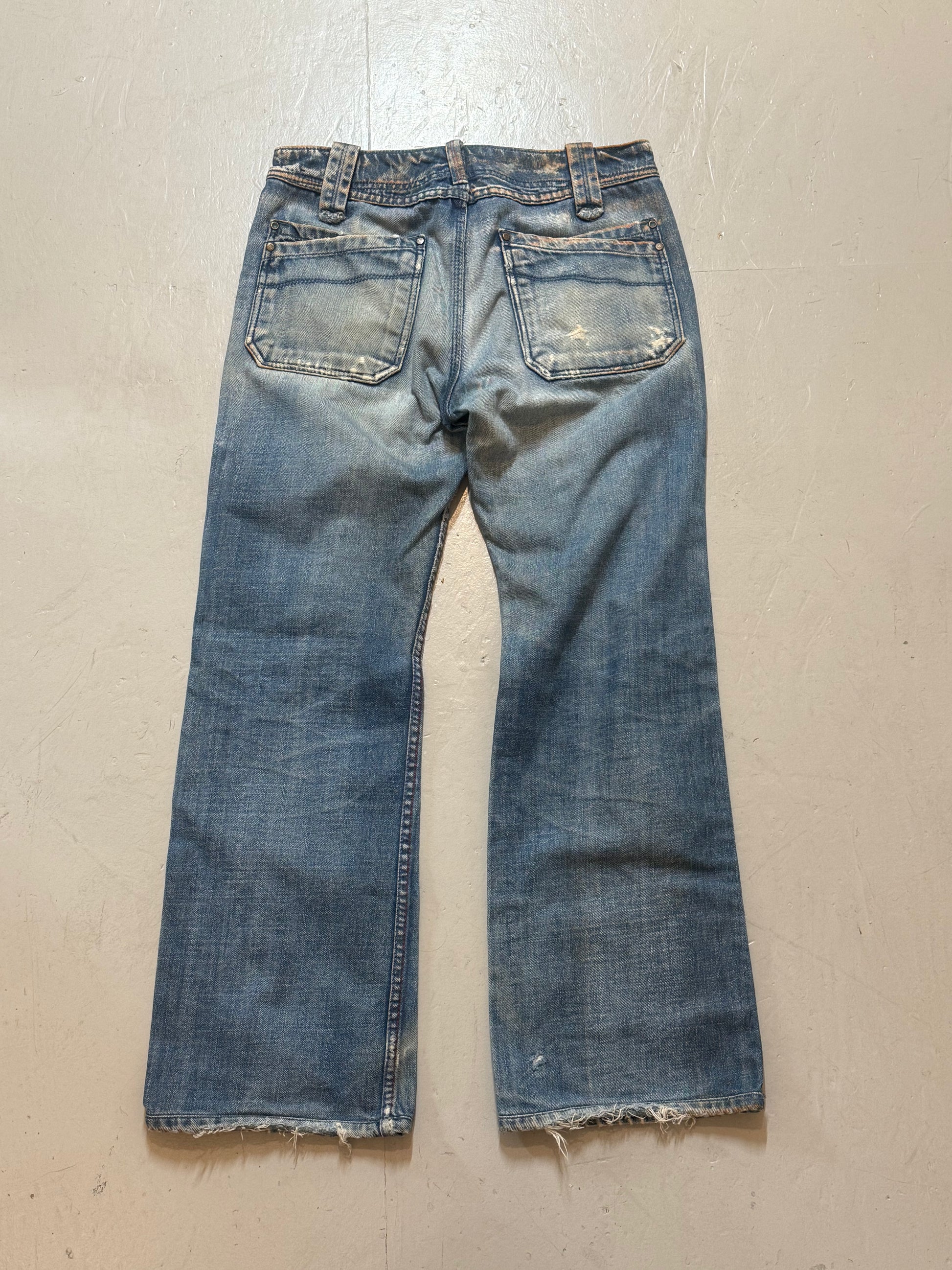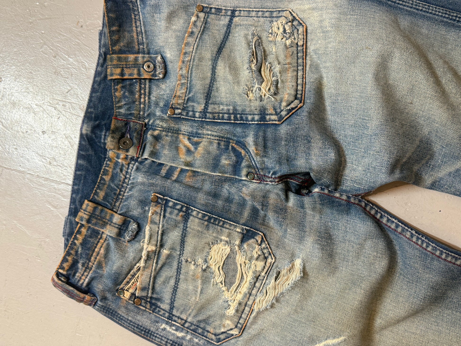 Early 2000's Diesel naval style denim, with repairs done by hand